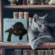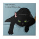Die schwarze Katze ist zu dramatisch über ihre Schlafzeit, die Katze liegt auf einem blauen Sofa und ist eine lustige Drama-Königin