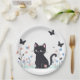 Niedliche schwarze Katze, die sich gerne Schmetterlinge ansieht, am frühen Morgen im Garten.