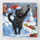 Black Cat Weihnachtsfest Schneeszene Quadratische Wanduhr