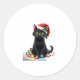 Black Cat Weihnachtslicht Weihnachtsmannmütze Funn Runder Aufkleber