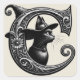 Black Cat Witch Hexerei Letter C Custom Initial Quadratischer Aufkleber