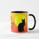 Das ist eine helle und farbenfrohe Halloween-Tasse, mit einer schwarzen Katzenjacke-Silhouette vor einem gelben Vollmond. Das Bild wird auf einem hellorangen Hintergrund platziert, der Text ist schwarz in der Mitte, "Die Hexenstunde". Das Katzen- und Mondbild wird zweimal auf der Tasse wiederholt. *Besonderer Dank an Lorene Digital Diva für die Verwendung ihres künstlerischen Textes in diesem Bild.*