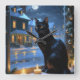 Black Cat With Christmas Lights Holiday Quadratische Wanduhr