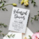 Charmante Probe-Dinner Einladung mit schwarzen Schriftart auf weißem Hintergrund. Probe Dinner Einladung mit Ihren Namen in einem charmanten schwarzen Skript.