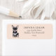 Niedliche, glückliche, lächelnde Chihuahua Hundeillustrierung. Bereit, Ihren personalisierten Namen und Ihre Adresse mit einem modernen Schriftart hinzuzufügen. Einfaches und Minimalistisches Design. Tri Farbe, schwarz, tan, und weiß Chihuahua.