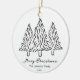 Add a touch of modern charm to your holiday decor with this Black Christmas Trees Doodles 1 Photo Merry Joyful Ceramic Ornament. The front features three whimsical hand-drawn Christmas tree doodles centered beautifully, with “Merry Christmas” written below in an elegant font and a customizable space underneath to add your family name and year.