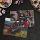Eine Save the Date Karte mit einem coolen Schriftart aus Metall, vier Foto des Paares auf einer Seite und ein Fünftel auf der Rückseite. Bis der Tod in einem roten Herz geschrieben wurde.