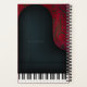 Dieses Notizbuch zeigt eine skurrile Abbildung eines schwarzen Konzertflügels auf dunkelrotem Hintergrund. Sie können das Cover mit dem Namen, Titel oder Schulfach Ihrer Wahl anpassen. Dieses mittelgroße Notizbuch eignet sich hervorragend zum Schreiben von Musikunterricht, Übungen und Noten während der Probe und der Masterclass.