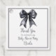 Pretty baby shower favor tag featuring a black coquette bow ribbon. The words can be changed to suit your own details or requirements