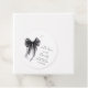 Elegantes Brautparty bevorzugt Tags, die eine schwarze Aquarellfarbe eines Coquette-Bogens aufweisen, "mit Liebe und Dank" in einem schicken Skript, und der Name der Braut und Dusche datieren in einfachem, modernem Schriftsatz.