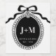 These anniversary wine bottle label have a monogramed charm. Personalize with names and date.