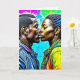 Personalisierte Jubiläumskarte. Hübsche Schlösser und farbenfrohe digitale Kunst mit afroamerikanischem Ehepaar, das küsst.