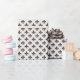 Dieses Verpackungspapier zeichnet sich durch ein klassisches schwarzes Fleur-de-lis-Muster-Set vor einem weichen cremefarbenen Hintergrund aus und schafft einen kühlen, aber eleganten Look. Ideal, um Ihren Geschenken eine Touch von Eleganz und Charme zu verleihen.