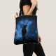 Eine Tasche mit einem Bild eines schwarzen Rabe in der Nacht auf einem Baumzweig mit Runen über dem "schwarzer Rabe" gekrönt. Moody und mysteriös Erscheinungsbild.