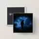 Button mit einem Bild eines schwarzen Rabe in der Nacht auf einem Baumzweig mit Runen über dem "schwarzer Rabe" steht. Moody und mysteriös Erscheinungsbild.