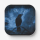 Teller mit nachts schwarzem Rabe auf einem Baumzweig mit Runen über dem "schwarzer Rabe". Moody und mysteriös Erscheinungsbild.