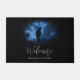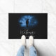 Begrüßen Sie die Tür mit einem Bild eines schwarzen Raben in der Nacht, das auf einem Baumzweig mit Runen über dem "schwarzer Rabe" steht. Moody und mysteriös Erscheinungsbild.