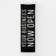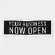 Benutzerdefiniert weiß auf schwarz jetzt geöffnetes Banner mit weißem Rand.