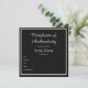 Black Customizable Certificate of Authenticity Mitteilungskarte