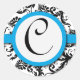 Black Damask Aquamarine Trim Wedding Siegel Runder Aufkleber