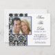 Mit unseren Ankündigung Datum freihalten Cards kündigen Sie Ihre zukünftige Hochzeit mit einem wunderschönen schwarz-weißen Damast-Muster an, das mit einem dunkelroyal blauen Foto-Rahmen besticht. Fügen Sie einfach Ihre Hochzeitsinformationen und Foto und Sie sind alle Set zu gehen! Matching Porto Briefmarke und Umschlag Aufkleber in unserem Shop verfügbar. Erhältlich in einer großen Auswahl an Farben und Sie können auch Ihre eigene Farbe wählen!