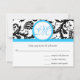 Black Damask mit Light Bright Aqua Blue Wedding RSVP Karte