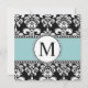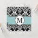 Black Damask Monogram Weditations Blue Einladung
