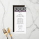 Diese elegante Menükarte bietet einen Vintagen schwarzen Damast auf einem silbergrauen Hintergrund als oberer Rand. Das Damast-Muster wird durch dünne schwarze und helle pastellfarbene Ränder vom Informationsteil der Menükarte getrennt. Das Menü ist schwarz auf weißem Hintergrund gedruckt. Die Rückseite der Karte ist dramatisch schwarz. Diese Karte passt zu den Black Damask Pink Monogram Wedding Einladungen und anderen Hochzeitsartikeln in unserem Geschäft. Es kann auch für jede Feier oder Abendessen Party zu jeder Jahreszeit verwendet werden. Wenn Sie Ihren Text nach den Änderungen anpassen müssen, verwenden Sie Anpassen und die Pfeilanzeigen. Nutzen Sie den Shop-Kontakt, wenn Sie Hilfe benötigen. Wir helfen Ihnen gerne weiter!