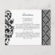 Stilvolle schwarze Damast Direction Card. Diese Karte kann als Wegweiser oder Eintrittskarte für Ihre Hochzeitseinladungen verwendet werden. Als Eintrittskarte kann sie Informationen über Hotelunterkünfte, geplante Aktivitäten, Geschenkkartei, Hochzeitswebsites und weitere Details zu Ihrer Veranstaltung enthalten. Matching Black & White Damask Einladungen, RSVP Cards, Hochzeitsprogramme, Umschlag Aufkleber & Postage finden Sie in unserem Shop unter www.celebrateitweddings.com