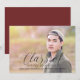 Moderne und elegante Delicate Class of 27 Foto Abschluss Ankündigung mit einem trendigen handgeschriebenen kalligraphischen Design in schwarz. Diese klassische und stilvolle Typografie-Abschluss-Fotokarte ist leicht zu personalisieren mit einem Foto des Absolventen und ihre Abschluss Details. Weitere Anpassungsoptionen finden Sie, indem Sie auf Anpassen klicken, wo Sie die Hintergrundfarbe auf der Rückseite der Einladung ändern.