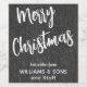 Moderne weiße Pinselschrift, Frohe Weihnachten, auf schwarzem Denim-Druck-Hintergrund, Gruß und geschäftlicher oder persönlicher Name. Perfektes Flaschenetikett für die Ferien, für Kollegen, Klienten, Freunde. Sie erhalten sechs 3,5" x 4" Etiketten pro Bestellung zu diesem fantastischen Preis und exzellentem Druck. Ändern Sie einfach den Text mit der bereitgestellten Vorlage. Weitere Informationen finden Sie unter "Über dieses Produkt" an der Seite.