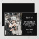 Diese Dankeschön-Karte zeigt ein faszinierendes und visuell auffälliges Design mit einem schwarzen Hintergrund, der als dramatische Leinwand für die Hauptillustrierung dient. Die Einladung selbst besteht aus hochwertigem, texturiertem Papier mit samtiger Oberfläche und verleiht dem Gesamtbild eine luxuriöse Touch. Im Mittelpunkt der Einladung steht eine faszinierende Grafik im Zentrum der Bühne. Im Mittelpunkt steht ein wunderschön detailliertes Skelettpaar, das von Dia de los Muertos inspiriert wurde und elegant in traditioneller mexikanischer Calavera-Manier dekoriert wurde. Die Skelettbräune und der Bräutigam werden mit einem aufwändigen Zuckerschädel-Make-up dargestellt, das durch lebendige Farben, verzierte Muster und zarte Blumenmotive verziert ist. Ihre Augenhöhlen sind mit künstlerischen Designs geschmückt, ihr Lächeln ist warm und einladend, trotz ihres skelettalen Aussehens. Diese auffallende Darstellung des Skelettpaares ist eingebettet in einen opulenten goldenen Rahmen, der eine Aura der Eleganz und Feier ausstrahlt. Der Rahmen ist aufwändig mit filigranen Mustern und verzierten Details gestaltet, was den Reichtum des Designs erhöht. Es glitzert mit einem Metallschimmer, was ihm eine regale und zeitlose Qualität verleiht.