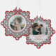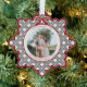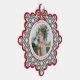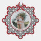 Send warm holiday wishes in style with this elegant preppy Christmas ornament featuring a classic black diamond pattern and red with charming coquette bows that beautifully decorates your family photo.