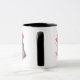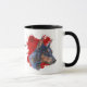 Ein wunderschönes Aquarellbild eines schwarzen Doberman Pinscher hebt sich vor einem abstrakten, leuchtend roten Spritzer-Hintergrund hervor. Das Bild befindet sich auf zwei Seiten der Tasse, mit Ihrem Namen oder einem anderen benutzerdefinierten Text in schwarz.