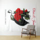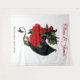 Ein schwarzer Drache sitzt unter den rote Rosen in einem weißen Hintergrund.