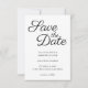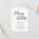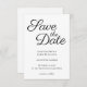 Der Save the Date typografische Text ist ein schöner zeitgenössischer, eleganter Kalligraphiestil in Schwarz vor klassisch weißem Hintergrund. Fügen Sie Ihre Verlobung Foto zur Rückseite, wenn Sie möchten. Passen Sie die Hintergrundfarbe an, wenn Sie möchten. Diese elegante kalligraphische Hochzeit speichern Sie die Datums-Stil Einladung kann auf einer Vielzahl von dekorativen Hintergründen in meinem Shop gefunden werden.