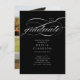 Das Budget Black Elegant Script Foto Graduation Party Einladung verfügt über ein schönes und elegantes Skript, zusammen mit Ihren Party-Details und Ihr volles Foto auf der Rückseite.
