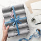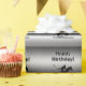 Metallische Serie: Geschenkverpackung aus poliertem Stahl mit metallischem Effekt mit Prägung aus schwarzem Poly-Pony und Fahrer, die kurz davor sind, den Ball mit dem Ballett zu schlagen. Ändern Sie die Happy Birthday Nachricht, um einen Namen, wenn Sie möchten, Ihre Wahl. Bildcode: Plopny