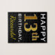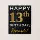 Black, Falsch Gold 13th Birthday + Custom Name Puzzle