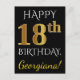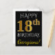 Black, Falsch Gold 18th Birthday + Custom Name Postkarte