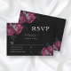 Black Floral Burgundy Peonies Wedding RSVP Karte