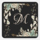 Black Floral Garland Script Monogram Elegant Quadratischer Aufkleber