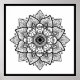 Coole schwarze Blumenmandala sehr verziert geometrisch symmetrisch auf kontrastierendem schwarzen Hintergrund.