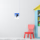 Spielzeug fliegender Roboter in blauem Himmel. Original Cartoon-Charakter. Digitales zeichn. Die Dekoration für die Kinderzimmer.