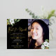 Black Foto Bat Mitzvah Floral Script Real Gold Folieneinladung