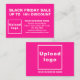 Attraktieren Sie mehr Kunden, indem sie ihnen Rabatt an diesem Black Friday, eine der Marketing-Strategien, um mehr Kunden haben. Individuell anpassbare Gehäusekarte, mit der Sie mehr Kunden anziehen können, um Ihre Produkte oder Kunden zu kaufen, um Ihre Dienstleistungen zu mögen. Einschließung einer Visitenkarte als Marketing-Material, das Sie auch für Markenbewusstsein nutzen können. Designfarben sind weiße Texte auf rosa Hintergrund. Geben Sie zum Anpassen dieser Gehäusekarte den prozentualen Rabatt an, den Sie anbieten, laden Sie Ihr Firmenlogo hoch, geben Sie Ihren Firmennamen, Ihre Adresse, Telefonnummer, E-Mail und Website oder Ihre Social-Media-Webseite ein. Bitte Karo nach dem Hochladen von Logos und Schriftzeichen auf der Vorder- und Rückseite. Wenn Ihnen das Aussehen gefällt, können Sie jetzt Ihre Bestellung aufgeben. Wenn Sie das Logo und die Texte ändern und verschieben müssen, um auf diese Gehäusekarte zu passen, wechseln Sie bitte im Entwurfswerkzeug. Sie können auch die Hintergrundfarbe, die Farbe des Schriftartes und den Stil des Schriftartes im Designwerkzeug ändern. Wir wünschen Ihnen mehr Umsatz an diesem Schwarzen Freitag.