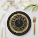 Dieser glamouröse, individuelle Party-Teller präsentiert ein festliches Neujahrsthema. Eine Uhr mit der Zeit um fast Mitternacht wird in einem Imitat Goldfolie auf schwarzem Hintergrund gedruckt. Der Rahmen ist mit einem Rahmen aus Golddiamanten versehen.