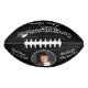 Schwarze Glückwünsche Grad Abschluss Foto Football. Personalisierter Fußball mit Abschluss-Hut, Sondertext und Foto im runden Rahmen. Ein tolles Geschenk und Sake Football für einen Absolvent, der Sport Liebe.