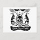 Ein dunkles primitives Wappen von zwei schwarzen Ziegen, die aufstehen und nach innen zu einem schwarzen Schädel zeigen. Der Schädel hat eine Schlange im korrupten Dreiheitsmuster, die die Ziegen zusammenklettert und in den Mund- und Augensockel des Schädels ein- und ausrutscht. Die schwarze Schlange beißt ihren eigenen Schwanz und macht einen mobilen Streifen. Über dem Schädel ist ein schwarzer Dachflügel verteilt.