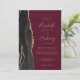 Die links Seite dieses eleganten, modernen Hochzeitseinladens besticht durch einen schwarzen Aquarellrahmen, der mit vergoldetem Imitat bestickt ist. Der anpassbare Text kombiniert goldfarbene Handschrift, Copperplate und kursiv Schriftart auf bordeauxrotem Hintergrund. Die Rückseite bietet Platz für Hochzeitsdetails auf einem soliden bordeauxroten Hintergrund, zusammen mit einem QR-Code, den die Gäste scannen können, um Ihre Website und UAWG zu besuchen, was die Kosten für den Druck und Versand separater RSVP-Karten rette.